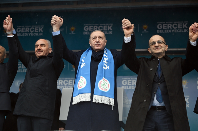 Cumhurbaşkanı Recep Tayyip Erdoğan, Rize’den tüm Türkiye’deki seçmenlere seslenerek “Belediye başkanı olarak kimi görmek istersiniz sorusunu bile millete değil de yapay zekaya soranlara, sizin fikrinize, taleplerinize, hassasiyetlerinize saygı göstermeyenlere kendi şahsi ikballeri için kapalı kapılar ardında bölücü örgütün uzantıları ile ‘Dem’lenenenlere, anladınız değil mi ? Bizim çayın demlenmesi değil ha DEM diye bir parti var ya. Onlarla demlenenler var. Hasılı size rağmen siyaset yapanlara bu seçimde esaslı bir ders vermeye hazır mıyız?” dedi.